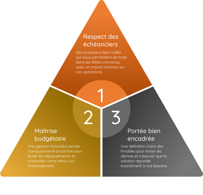 Des processus bien rodés qui nous permettent de livrer dans les délais convenus, avec un impact minimal sur vos opérations.